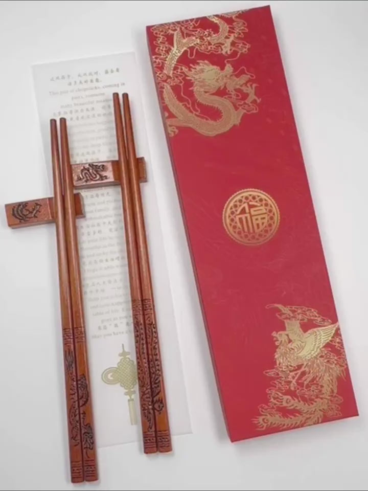 Offrez ou offrez-vous une expĂ©rience culinaire raffinĂ©e avec ce coffret de baguettes traditionnelles gravĂ©es de dragons protecteurs. FabriquĂ©es en bois naturel poli, elles allient Ă©lĂ©gance, symbolisme et durabilitĂ©. PrĂ©sentĂ©es dans un Ă©crin rouge et or, elles reprĂ©sentent le cadeau idĂ©al pour les amateurs de culture asiatique et dâart de la table.